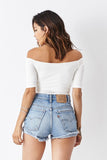 This celeb inspired crop top is a must have! The off the shoulder design shows just enough skin while being oh so stylish. The crop top is also double lined and super stretchy to flatter your curves. Wear it with a high waisted skirt or dress it down with your favorite jeans.