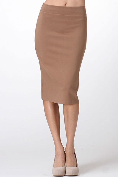 THE MYSTYLEMODE TAUPE STRETCH MIDI SKIRT
