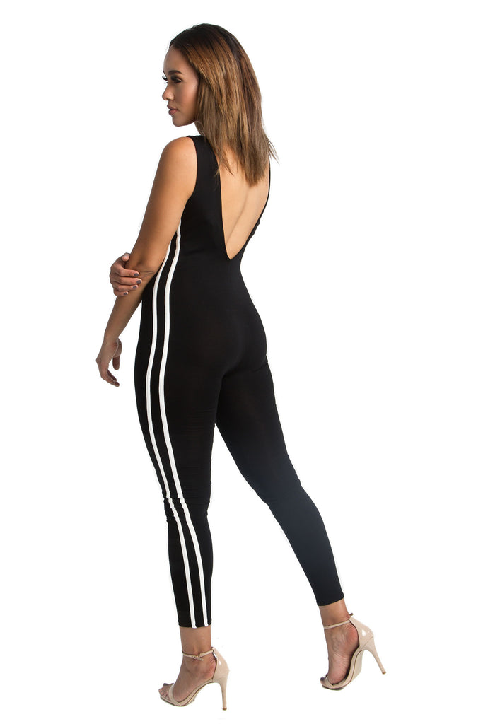 THE MYSTYLEMODE BLACK WITH WHITE STRIPES JUMPSUIT