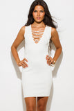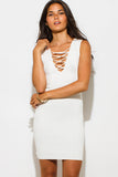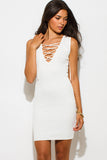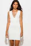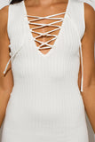 IVORY WHITE RIBBED KNIT LACEUP SLEEVELESS SWEATER MINI DRESS