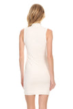 THE MYSTYLEMODE IVORY WHITE DOUBLE LINED SLEEVELESS FRONT ZIPPER MINI DRESS