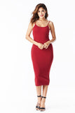 THE MYSTYLEMODE BURGUNDY KNIT RIBBED SPAGHETTI STRAP MIDI DRESS