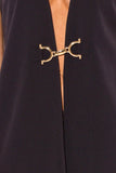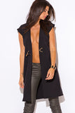 FINAL SALE-BLACK BUCKLE EMBELLISHED TUNIC BLAZER COAT