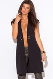 This uber trendy, chic, and modern tunic blazer is tailored beautifully for a minimalist high fashion look. Sleeveless, yet shoulders are covered for a cap sleeve effect that looks ultra elegant. A piece of exclusive buckle closure is not only functional, but also an embellishment that adds richness to this stylish piece. Tunic length makes it super versatile, wear it with a pair of slacks for work and business meetings, throw it over a fitted mini for a super stylish going out outfit, or over jeans and a tee for a celeb look lounging around town.