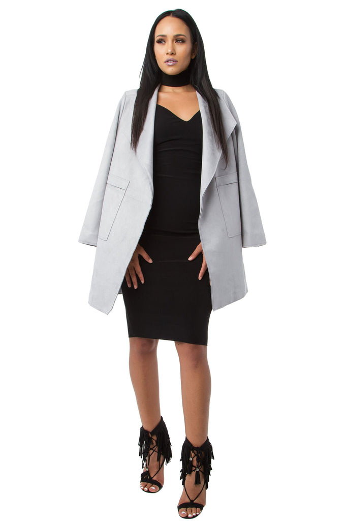 THE MYSTYLEMODE GRAY SUEDE CASCADING COLLAR COAT