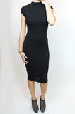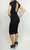 THE MYSTYLEMODE BLACK KEYHOLE CAP SLEEVE FUNNEL NECK DOUBLE LINED BODYCON MIDI DRESS