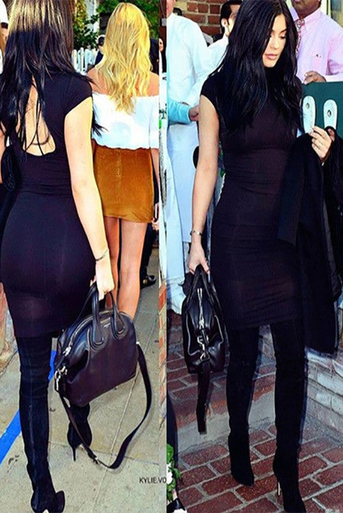 This Mystylemode exclusive is one of the must have dresses for Fall! This Midi dress has a keyhole back, cap sleeves, high funnel neck, double lined, and not only is stretchy to fit like a glove hugging and flattering your curves, but it is super comfortable and fits to perfection. This Midi dress is classic and chic, featuring long and tight neckline. It is the perfect dress to wear anywhere you go!