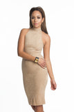THE MYSTYLEMODE NUDE SUEDE DOUBLE LINED TURTLENECK MIDI DRESS