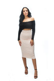 This longer length high waisted Midi is a must have staple piece! The pencil Midi skirt is made of super soft Rayon Modal fabric to fit and hug your curves like a glove, yet super comfortable! This skirt will flatter any body type by showing off your curves and just long enough to still show off your favorite pair of pumps.