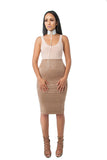 THE MYSTYLEMODE TAUPE SUEDE DOUBLE LINED MIDI SKIRT