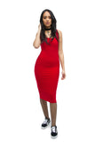 THE MYSTYLEMODE RED ESSENTIAL DOUBLE LINED TANK MIDI DRESS