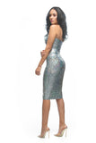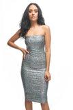 THE MYSTYLEMODE SILVER MOSAIC STRAPLESS MIDI BODYCON DRESS