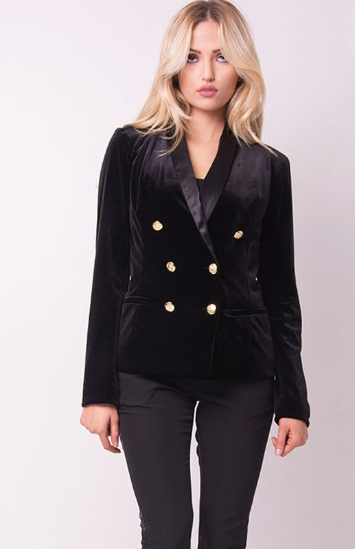 Introducing the Mystylemode signature velvet coat NOW in a shorter cropped version! You loved our tuxedo jacket dress so much we decided to make it a bit shorter to wear as the staple in any outfit to spice up your wardrobe. This coat is one of the staple pieces you will need in your closet. The coat features a super soft luxe velvet material, gold accent buttons, pockets, and a satin lining. You will look and feel amazing in this statement piece that will give you a bold, powerful, stylish look.