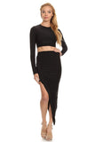 THE MYSTYLEMODE BLACK TWO PIECE LONG SLEEVE CROP TOP AND ASYMMETRICAL PENCIL SKIRT SET