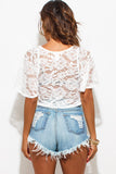 You will fall in love with this boho chic lace crop with batwing sleeves. Perfect for a fun, flirty outfit, or a day at the beach as a cover up.