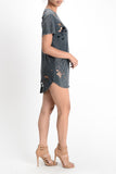 CHARCOAL MINERAL WASHED DESTROYED TUNIC DRESS