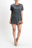 The tunic dress tee is an absolute wardrobe essential for all year long! This tunic style top with destroyed detail can be worn as a dress or as a tee. This tee is soft and comfortable yet stylish. Perfect to dress up or down!