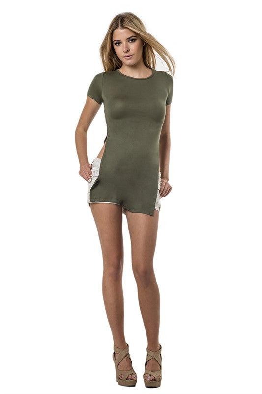 OLIVE SIDE SLIT SHORT SLEEVE BASIC TEE