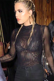 THE MYSTYLEMODE BLACK LONG SLEEVE FUNNEL NECK MESH BODYSUIT