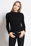 This bodysuit is perfect for the winter. It is comfortable and can be dressed up or down. Perfect to wear with our Mystylemode skirts or finish with jet black jeans and studded buckle boots. Has snap button closure at the crotch.