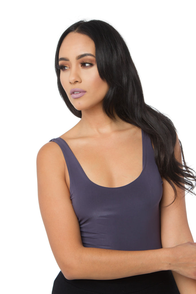 THE MYSTYLEMODE CHARCOAL TANK LOW BACK ESSENTIAL BODYSUIT