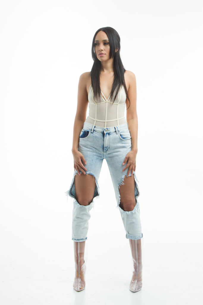 THE MYSTYLEMODE CREAM MESH CORSET DETAIL BODYSUIT