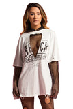 THE MYSTYLEMODE WHITE BECK OVERSIZED AND DISTRESSED TEE