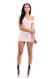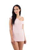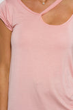 BLUSH PINK RIPPED CUT OUT NECKLINE BOYFRIEND TEE TUNIC