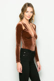 • THE MYSTYLEMODE COPPER VELVET PLUNGING V NECK SHOULDER SLIT LONG SLEEVE BODYSUIT