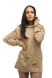 THE MYSTYLEMODE MENSWEAR TAN DISTRESSED HOODIE