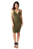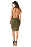 THE MYSTYLEMODE OLIVE RIBBED SPAGHETTI STRAP OPEN BACK MIDI DRESS