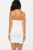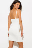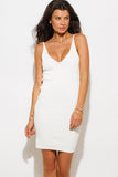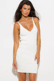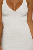 IVORY WHITE RIBBED KNIT THIN STRAP V NECK SWEATER MINI DRESS