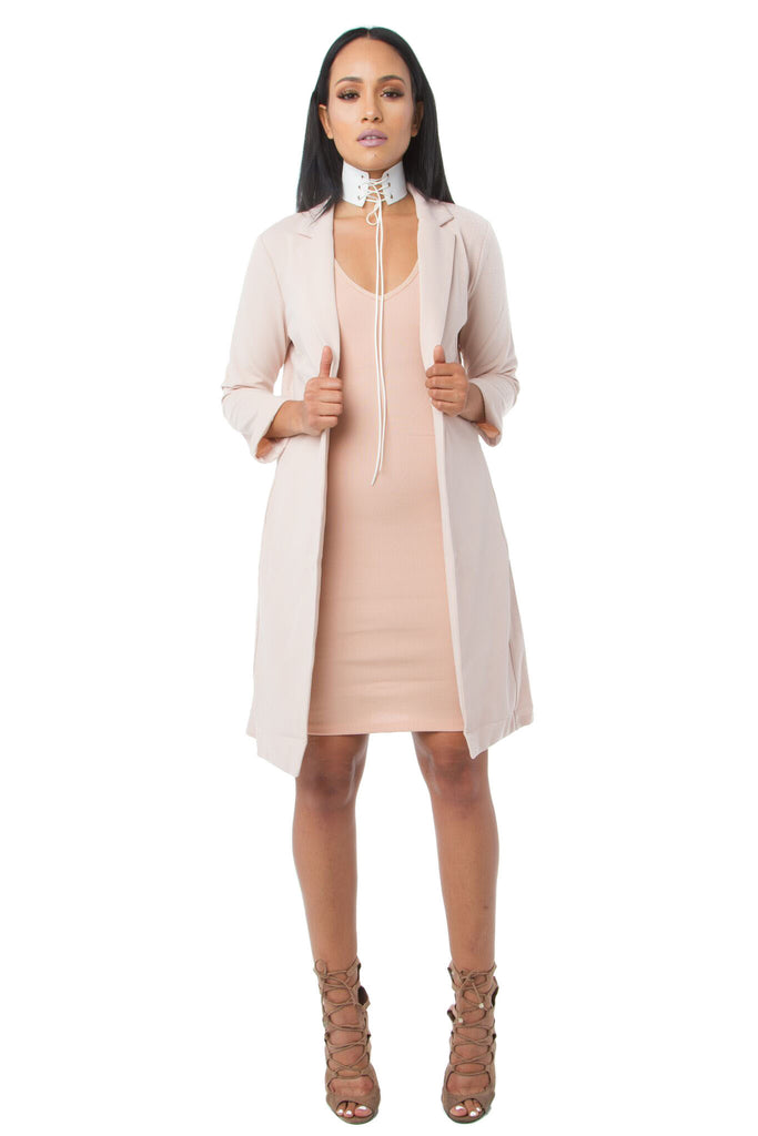 THE MYSTYLEMODE TAUPE SIDE ZIPPER DETAIL LONGLINE BLAZER