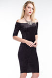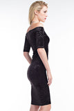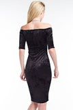 FINAL SALE-THE MYSTYLEMODE CRUSHED VELVET OFF THE SHOULDER MIDI DRESS