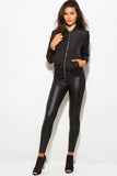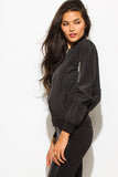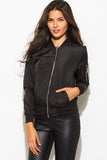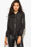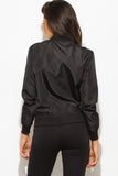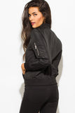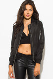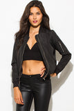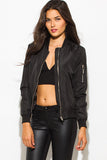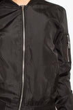 BLACK BANDED CROPPED WITH SILVER ZIPPER BOMBER JACKET