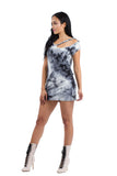 CHARCOAL GRAY TIE DYE RIPPED CUT OUT NECKLINE BOYFRIEND TEE TUNIC