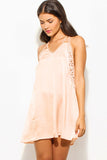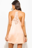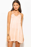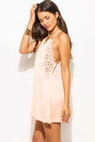 LIGHT PEACH CRINKLE V NECK LACE CUT OUT RACER BACK SLIP MINI DRESS