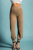 THE MYSTYLEMODE NUDE SIDE SLIT KNITTED PANTS