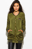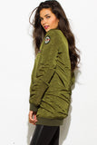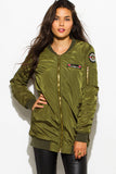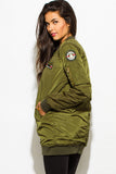 OLIVE GREEN MILITARY POCKETED PATCH EMBROIDERED PUFF BOMBER COAT JACKET