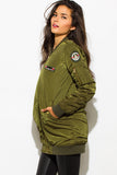 • OLIVE GREEN MILITARY POCKETED PATCH EMBROIDERED PUFF BOMBER COAT JACKET