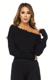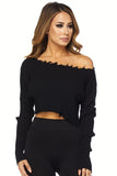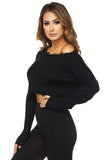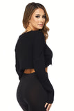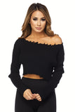 THE MYSTYLEMODE BLACK DISTRESSED LONG SLEEVE CROP TOP SWEATER