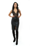 The Mystylemode Mesh bodysuit with corset type detail is a must have staple in your wardrobe and will take your outfit to that next level! It features a deep V-neck, spaghetti straps, and thick bandage type designs through the bodysuit to give it a corset type look. This bodysuit is so stylish and perfect for layering. Perfect to wear with our Mystylemode skirts or with jeans to look fabulous and on point at the same time.