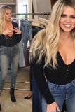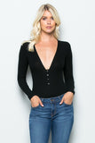 The Mystylemode Plunging V neck, ribbed bodysuit is a must have staple in your wardrobe and perfect for ANY season. It features a plunging V-neck, long sleeves, snap buttons down the center, and amazing ribbed material! This bodysuit is wearable on any day and so stylish that you will always want to wear this bodysuit. Perfect to wear with our Mystylemode skirts or with jeans to look fabulous and comfortable at the same time.