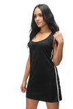 THE MYSTYLEMODE BLACK WITH WHITE STRIPE SNAP BUTTON TANK MIDI DRESS