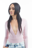 THE MYSTYLEMODE BLUSH PLUNGING V NECK DOUBLE LINED ESSENTIAL BODYSUIT