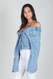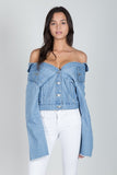 THE MYSTYLEMODE DENIM OFF SHOULDER SWEETHEART JEAN JACKET