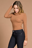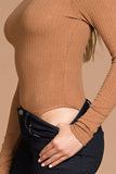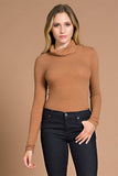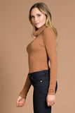 THE MYSTYLEMODE CAMEL LONG SLEEVE RIBBED COWL NECK BODYSUIT